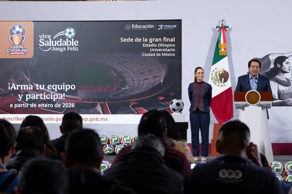 El secretario de Educación Pública, Mario Delgado, anunció la Copa Escolar Nacional de Futbol Vive Saludable, Juega Feliz, en la que participarán estudiantes de todo el país.