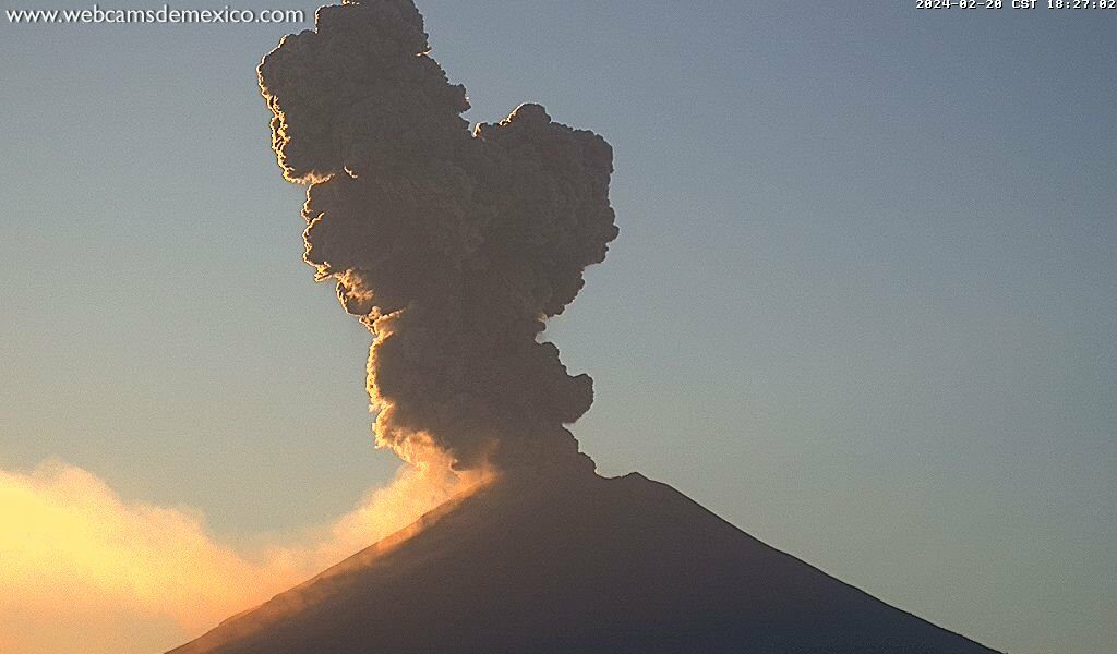 La Secretaría de Gestión Integral de Riesgos y Protección Civil de la Ciudad de México informó que se observa ligera emisión de vapor de agua con poco contenido de ceniza volcánica.