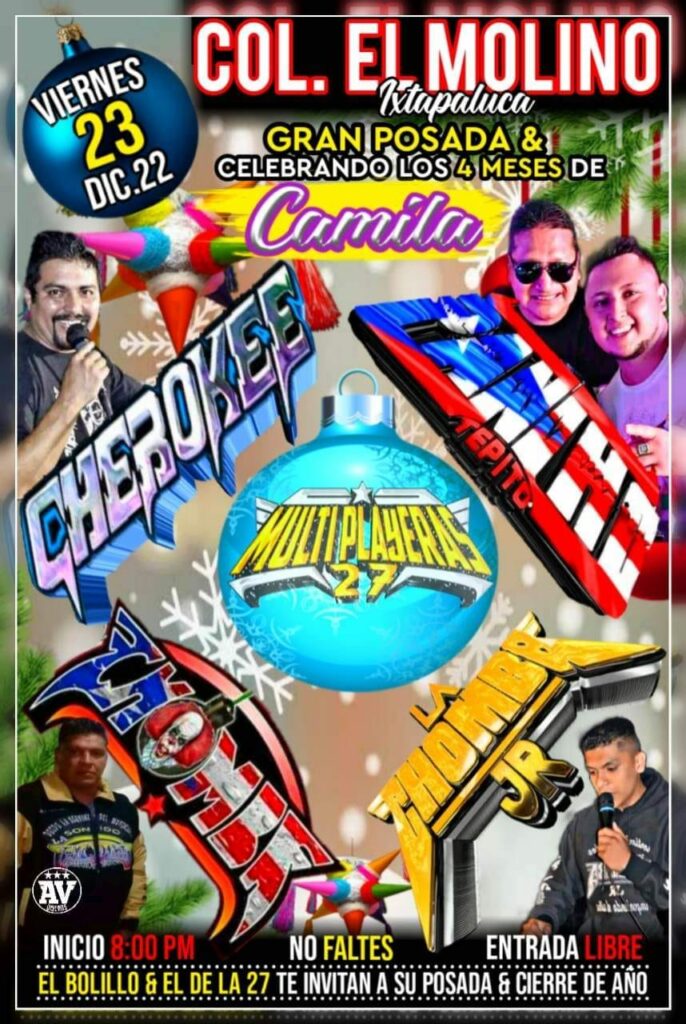 En la colonia El Molino en Ixtapaluca se llevará a cabo la gran posada sonidera animada por Chebokee, Sonido La Chomba y la Chomba JR, entre otros.