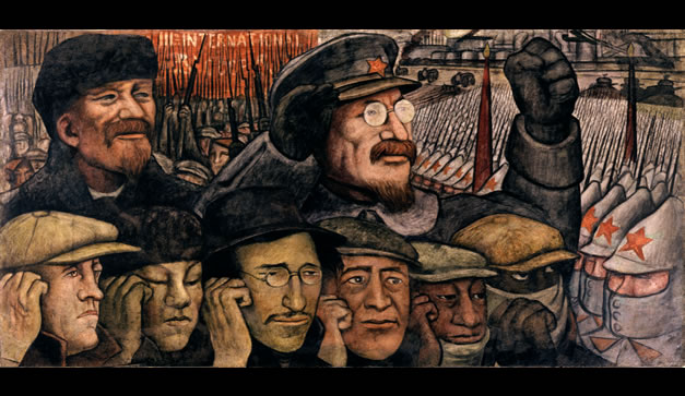 -Si vas, no dejes de ver la pintura Tercera Internacional. Es una pieza que congrega a Vladimir Lenin y a León Trotsky junto a un ejército compuesto por personas de diferentes nacionalidades, que representan al proletariado del mundo. Esta pieza proviene del Museo del Palacio de Bellas Artes y ha sido prestada para otras exposiciones en muy contadas ocasiones.