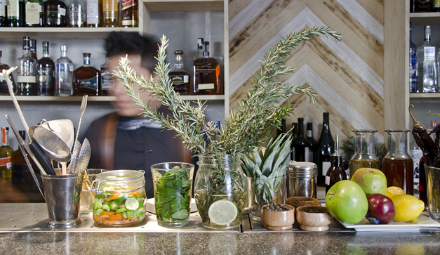 Al entrar en el sótano de la casa porfiriana donde se ubica Puebla 109, es imposible apartarle la vista a la protagónica barra de cuatro metros frente a la puerta. Sobre la superficie de azulejo azul hay frascos de vidrio con ejotes, albahaca, eneldo, mermeladas, infusiones de vodka con verduras y shrubs (fruta en vinagre), colocados de tal manera que parecen los ingredientes de una fórmula científica, y en cierta forma lo son: aquí los bartenders, comandados por David Mora (también jefe de barra de Romita y ganador del concurso del mezcal Siete Misterios), experimentan con distintas técnicas, licores e insumos.