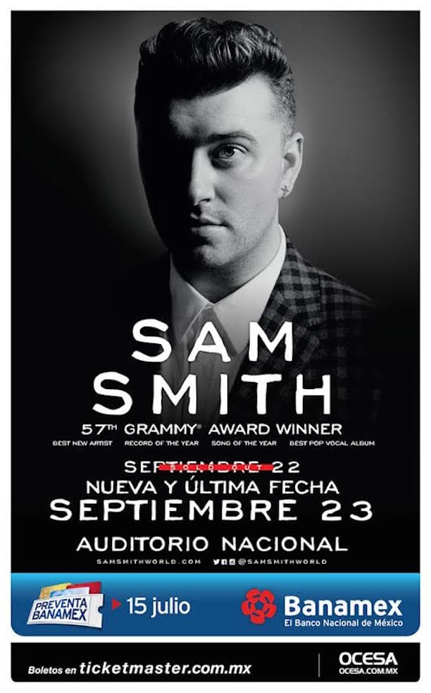 Actualización 13 de julio 2015 Después de lograr un sold out con su primera fecha del 22 de septiembre, Sam Smith abre una segunda y última fecha en este recinto el próximo 23 de septiembre. La Preventa Banamex para…