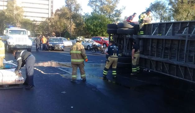 Esta mañana tenemos caos vial en Insurgentes y Circuito Interior (La Raza) por culpa de un camión que se volcó, pero no es cualquier tráiler, sino uno repleto de chela. 23 toneladas, para ser más exactos. #Accidente Volcadura Trailer…