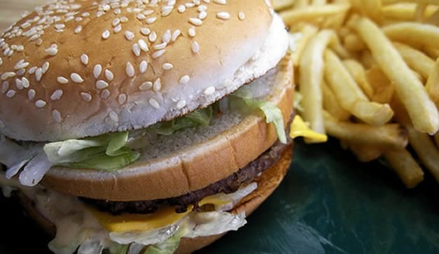 1 porción de ensalada Crispy Chicken Salad (Chili’s): Calorías 810 kcal Grasas 423 Big Mac con queso 1 porción Calorías 576 kcal Grasas 292 Entonces por cada ensalada te estarías comiendo las mismas calorías de 1 ½ Big Mac….