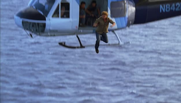 James Ford se avienta del helicóptero para que sus amiguitos puedan salir de la isla. Lo fregón de este momento: qué diablos le dijo a Kate. Verlo saltar hacia el océano y ese beso… aplausos.