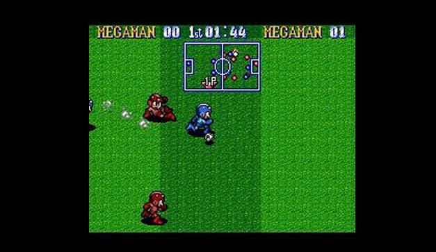 Es totalmente ilógico. A ver, a ver… ¿Megaman? ¿El que peleaba con Top-Man, Needle-Man y el resto de los robots de Dr. Willy? ¿El que tenía una pistola interestelar en lugar de brazo? ¿Ahora juega futbol? Empata con World…