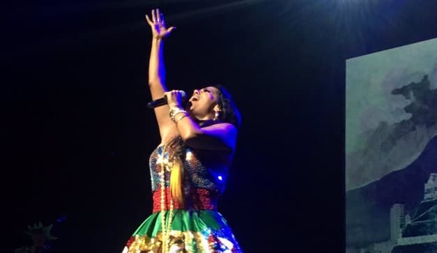Lila Downs rindió tributo a Juan Gabriel, tres meses de su muerte, y brindó su concierto a los campesinos productores de cacao, al invitar al público a rescatar el cacao mexicano, con 10 mil flores de cempasúchil. La oaxaqueña sorprendió…