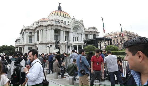 Como cuando se terminaba la exposición de Frida, hoy Bellas Artes luce una gran fila de personas, que a mediodía ya llegaba al Hemiciclo a Juárez, la mitad de la Alameda Central. Entre cantos y porras la gente esperaba…