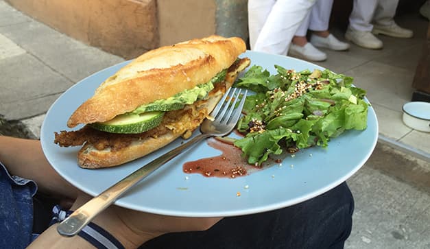 Pizca de Sal es, literalmente, una barra de sándwiches, café y té. Para sentarse, hay una banquita afuera, dos adentro del local y un par de bancos en la barra. Fuera de eso, es un concepto grab & munch….