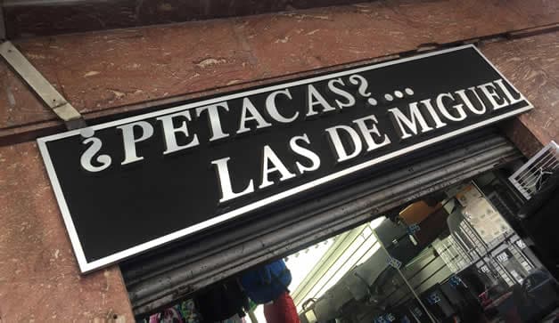 Uno de los lugares más fotografiados y compartidos en redes sociales por los turistas nacionales que visitan el Centro Histórico es el letrero que se ubica en la esquina de Allende y Tacuba que dice: “PETACAS?… LAS DE MIGUEL”…