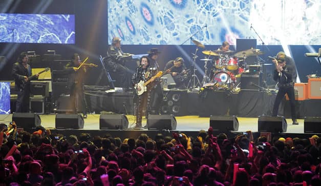 Con una energía inagotable, El Tri celebró en grande 45 años de su inicio, con un concierto que duró cinco horas, en la Arena Ciudad de México, donde recorrió las mejores rolas de su trayectoria. “¡Viva México cabr$%! No…