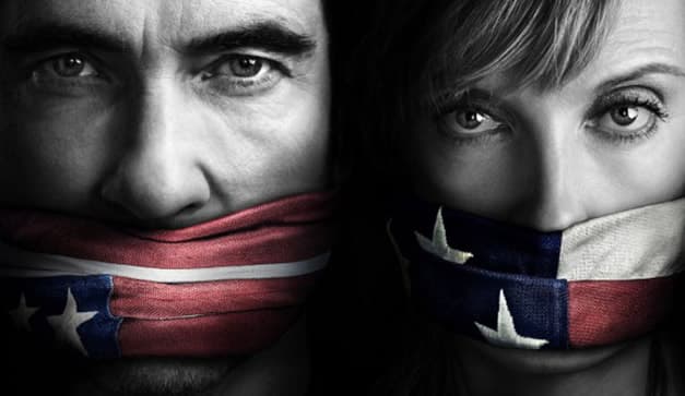 Escena uno. Toni Collette, Tate Donovan y sus hijos ficticios en la serie “Hostages” están sentados en un sillón frente a la tele. Parecen la familia perfecta excepto por un detalle. Están rodeados por armas de alto calibre y…