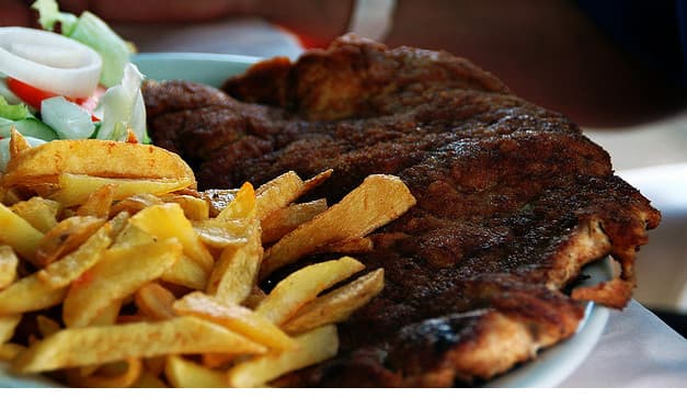La parrilla Quilmes Hay milanesas de pollo y de res, acompañadas de papas a la francesa o ensalada. La milanesa napolitana lleva queso, pomodoro y jamón. Para acompañar se recomienda algún vino de la carta como el casa madero…