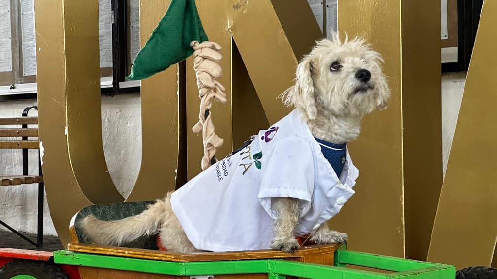 Salmy es un perrito que se ha vuelto emblema de Sarepta, un proyecto dentro de la UNAM para generar conciencia sobre el manejo del aceite de cocina usado.