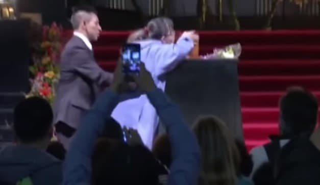 Esta damita se lució en el homenaje a Juan Gabriel: burló la seguridad, agarró la urna con las cenizas y la besó. Más tardó en abalanzarse, que en lo que la seguridad la retiró. Sucediió en la mañana, luego…