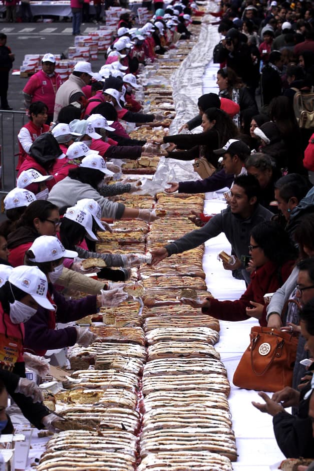 Panaderos de distintas partes de la ciudad participaron en la elaboración de la Rosca de Reyes que se realizó en el Zócalo. La rosca midió 1440 metros y participaron más de 50 panaderías.