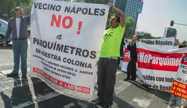Vecinos de la Delegación Benito Juárez, en especial de la colonia Nápoles, clausuraron simbólicamente la Secretaría de Desarrollo Urbano y Vivienda (Seduvi), en protesta por la colocación de parquímetros en dicho perímetro. Argumentan que no fueron consultados.