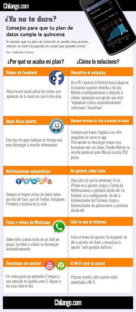 Aunque las compañías telefónicas nos bajan el sol, la luna y las estrellas con planes de internet infinitos, lo cierto es que entre tanto whatsappeo, tuiteo, facebookeo y otros verbos de la era de internet la mayoría de los…
