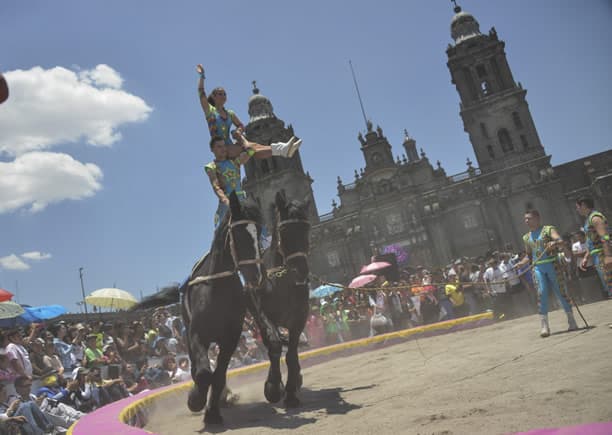 Artistas, trabajadores y empresarios del circo realizaron una función con animales en el Zócalo para protestar contra de la ley que prohibe el uso de estos seres en sus espectáculos.