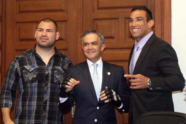 Miguel Ángel Mancera conoció a Caín Velásquez y Fabricio Werdum, peleadores de Ultimate Fighting Championship (UFC). Estos gladiadores se enfrentarán el próximo 15 de noviembre en tierras chilangas.
