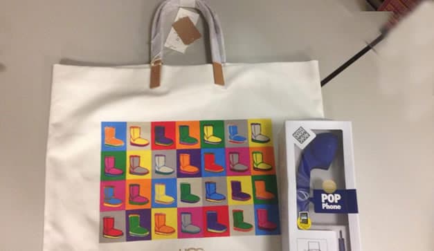 La prestigiosa marca de botas y pantuflas australianas UGG tiene para ti un regalo especial: tres kits de una bolsa y una bocina en forma de teléfono como en la foto. No te pierdas la nueva colección de verano!…