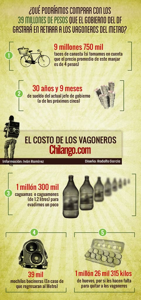 El Gobierno del Distrito Federal anunció que retirar a los vagoneros de las instalaciones del Metro costará al erario público 39 millones de pesos que saldrán de los impuestos –¿de dónde más?–. En una confe realizada este viernes, Héctor…