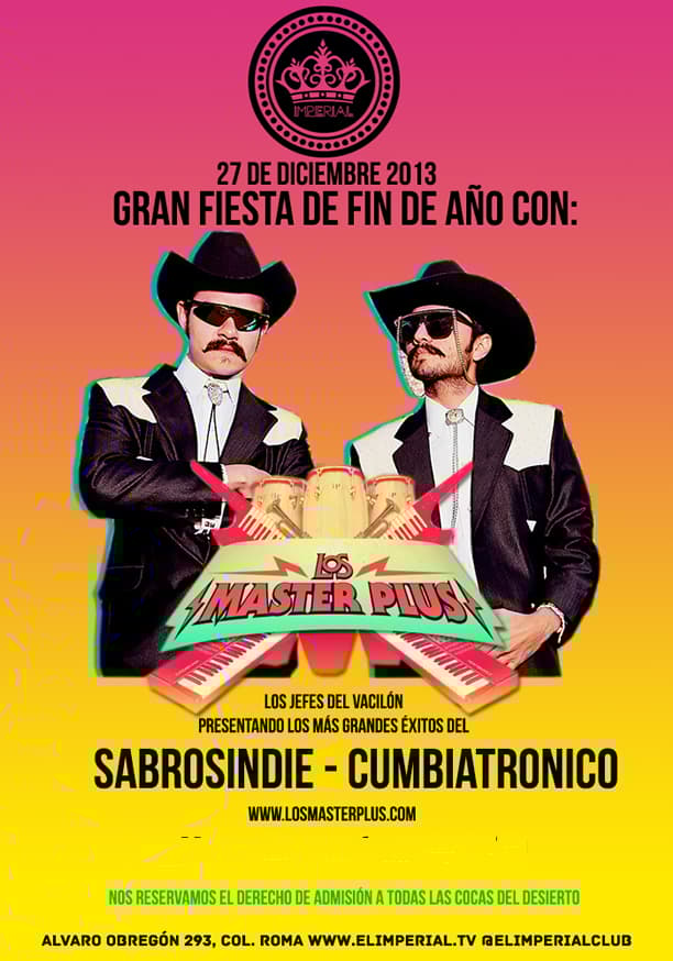 Esto habrá en El Imperial el viernes 27 de diciembre de 2013. Y para los que quieran asistir, tenemos 4 pases dobles. Sólo contesten la siguiente trivia y manden sus respuestas a [email protected] con el asunto “Master Plus”. 1….