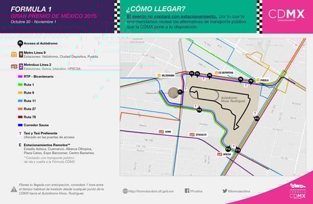 Para que los asistentes al Gran Premio de México de la Fórmula 1 y también los NO asistentes no tengan inconvenientes viales durante el 30 y 31 de octubre y 1 de noviembre que será este evento en la…