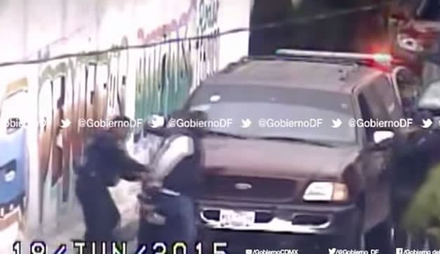 En este video se ve cómo policías del DF atrapan a unos extorsionadores en Iztapalapa que previamente hirieron a una persona con arma de fuego y causaron un incendio en un tianguis.