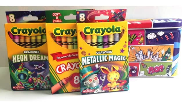 Tenemos 3 latas de crayones edición Premium que incluye; lata coleccionable edición limitada con 24 crayones exclusivos (8 colores clásicos, 8 colores neón y 8 colores metálicos) que serán para los primeros tres que contesten la siguiente trivia. 1….
