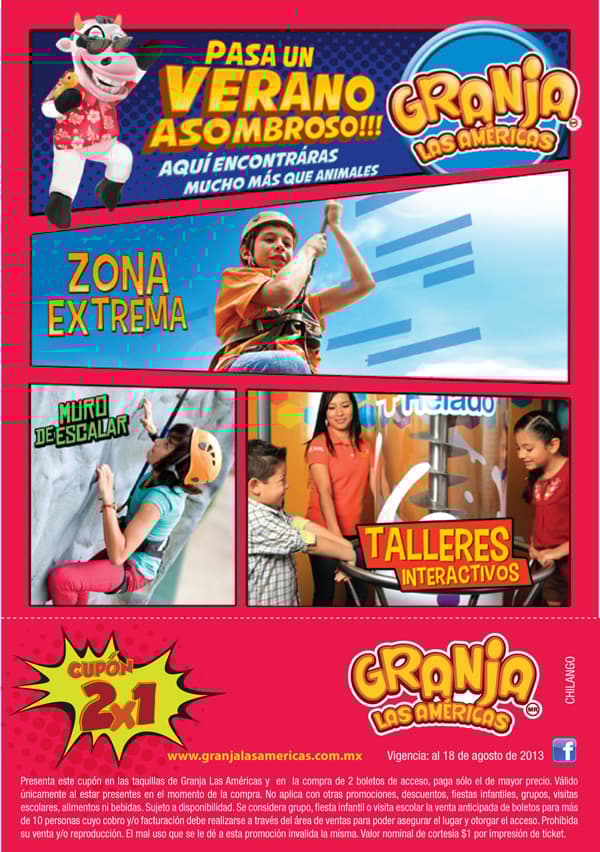 El staff de Granja Las Américas se puso guapo y nos regala a los chilangos este cupón para disfrutar de todas sus atracciones al 2×1. Sólo imprímanlo y preséntenlo en las taquillas del lugar. ¡Que lo disfruten!