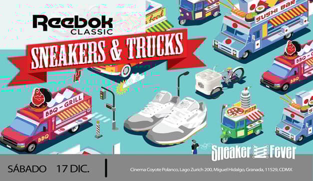 Chilango y Reebok te invitamos a Sneakers & Trucks, un evento al aire libre para los amantes de los sneaker donde podrán comprar e intercambiar sus tenis Habrá bandas en vivo, arte urbano, barbería, tattoos y tiendas especializadas en sneakers…