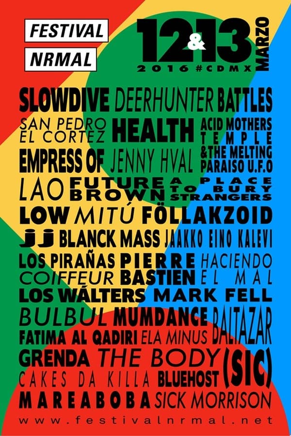 La séptima edición del Festival NRMAL (y tercera en el DF), ya tiene listo su cartel, el cual encabezan Slowdive y Deerhunter. Este festival se realizará los días 12 y 13 se marzo del 2016 en el Deportivo Lomas…
