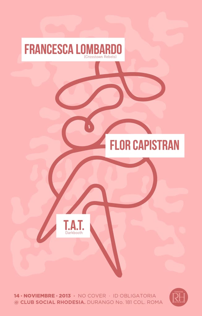 Por: @juanchulfo ¡Hoy es noche de fiesta en Rhodesia! Francesca Lombardo, Flor Capistrán y T.A.T. se encargarán de poner la fiesta. Además, habrá chupitos especiales a a $35. ¡No faltes!