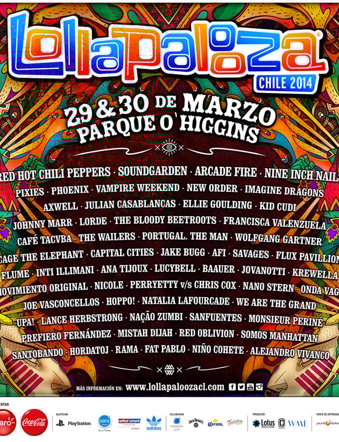 Por fin revelaron el cartel oficial de uno de los festivales musicales más importantes en América del Sur: Lollapalooza Chile 2014. Esta será la cuarta edición del festival y se llevará a cabo el 29 y 30 de marzo…