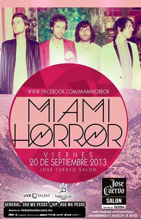 Miami Horror regresará a México el 20 de septiembre para presentarse en el José Cuervo Salón. Los boletos tienen un costo de $350 y $450