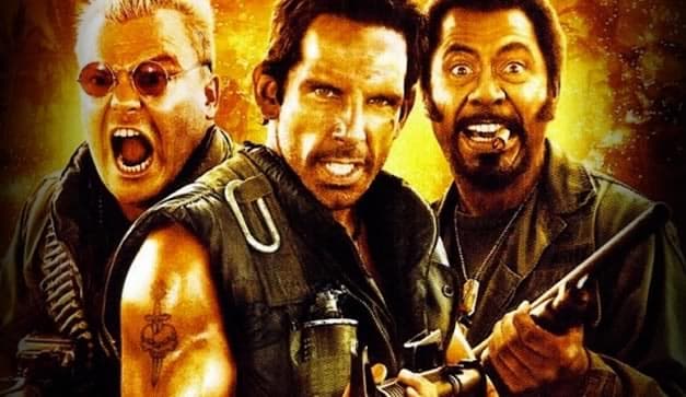 ¿De qué va? Un equipo de filmación entra a una guerra de verdad. Tienen que verla para entenderlo. ¿Cómo debió llamarse? Mmm, así como está en inglés. Tropic Thunder… por qué creen que no podemos hablar otro idioma. Damn….