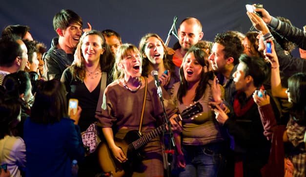 La noche comenzó con Mountain Man, un trío de chicas que también están en la banda de Feist, y que tienen un peculiar estilo de folk, prácticamente acapella. El trío fue bien recibido por algunos, pero otros optaron por platicar…