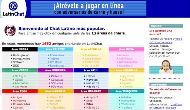 ¿Qué es esto? La sala de chat más famosa de Latinoamérica. Pregúntale a cualquier adulto entre dieciocho y treinta años, y TODOS te contestarán que su primer contacto con el “chats” fue en este sitio. Todos tuvimos un cyber-novio…