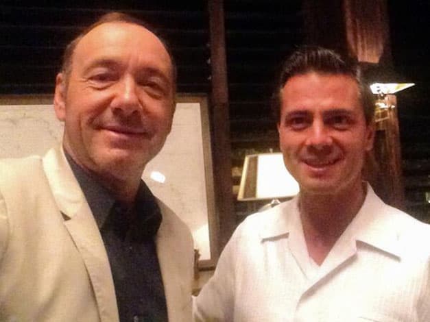 Kavin Spacey, protagonista de House of Cards, uso su cuenta de twitter para publicar una foto a lado de Enrique Peña Nieto acompañada del siguiente mensaje: “Un presidente es real. Con el presidente Peña Nieto en México. Es bueno conocer…