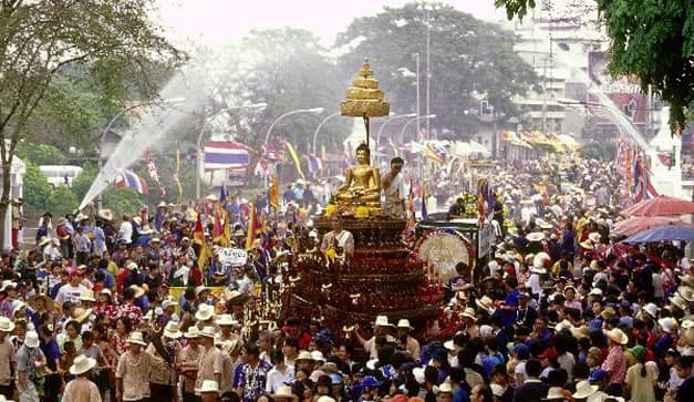 Se celebra del 13 al 15 deabril, durante el año nuevo tailandés, y lo que hacen es básicamentearmar una guerra de agua dentro de todo el país con cubetas, globos, Super Soakers, mangueras, elefantes, etc., y se empiezan a empapar a…