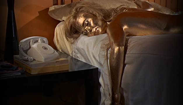 ¿De qué película? Goldfinger… la mejor peli de James Bond. ¿Sobre qué va? El despiadado Auric Goldfinger asesina a su secretaria Jill Masterson, con un método bastante extraño: la asfixia por medio de la piel. Es decir, cubrió por…