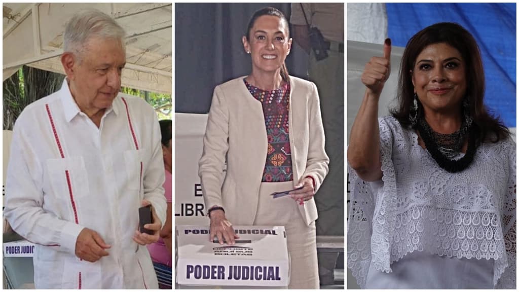 La presidenta Claudia Sheinbaum, su antecesor Andrés Manuel López Obrador y la jefa de Gobierno, Clara Brugada, participaron en la elección judicial 2025.