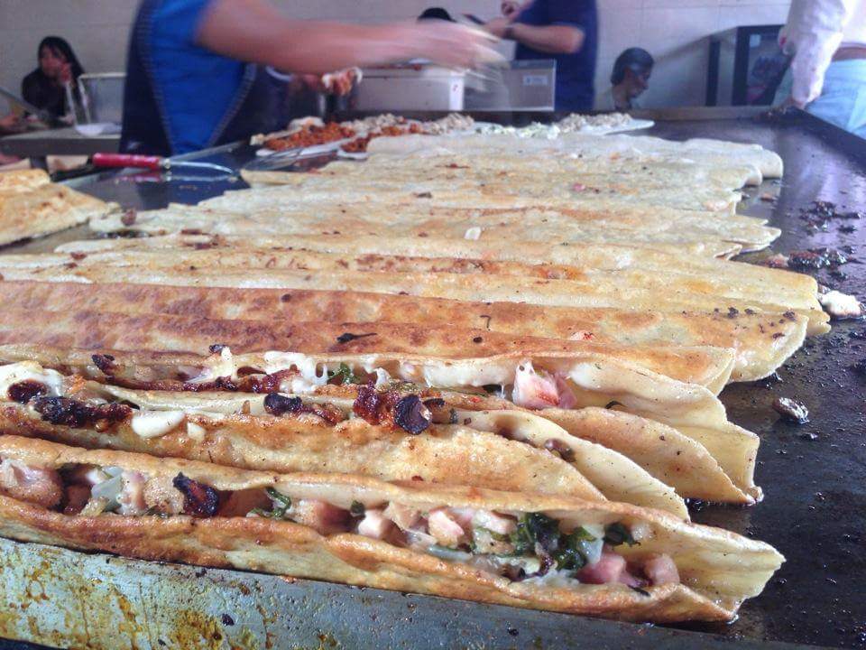 Un espacio amplio, mucha gente alrededor, tres señoras despachan con ahínco y en el ambiente flota una aroma delicioso a guisado. Una de ellas no es Amparito, no te ilusiones. En Los Machetes de Amparito se despachan unas 200 quesadillas…