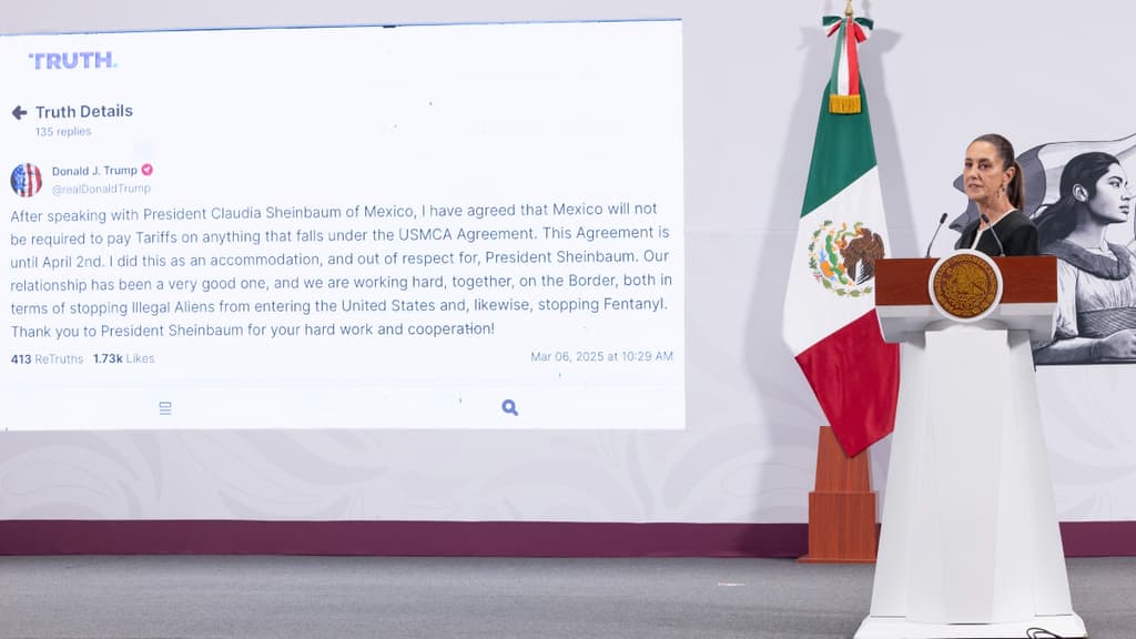 Tras una llamada con la presidenta Claudia Sheinbaum, Donald Trump aplazó los aranceles del 25% a productos del T-MEC hasta el 2 de abril.