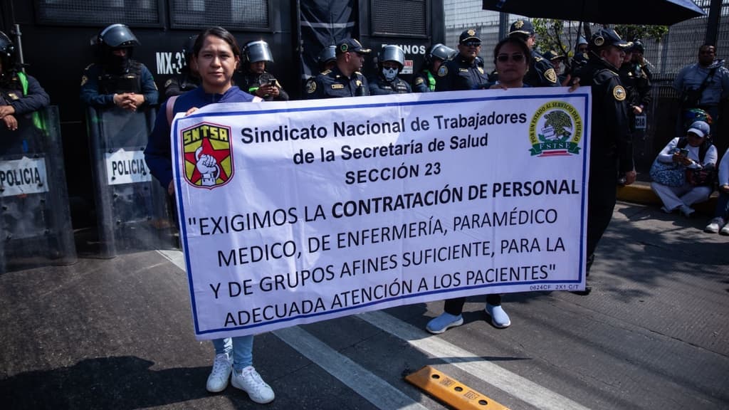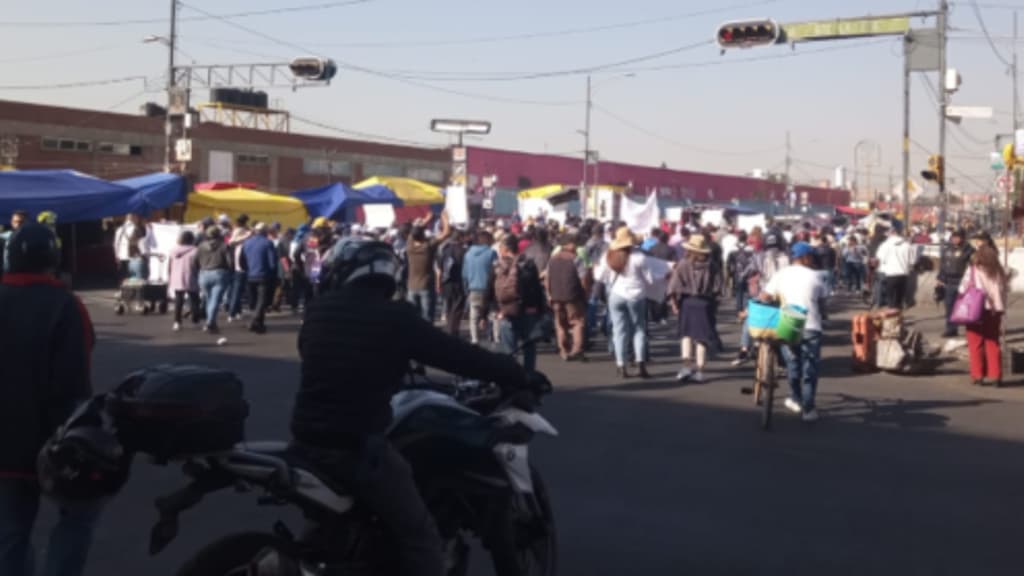 Manifestantes protestan en las inmediaciones del Aeropuerto Internacional de la Ciudad de México (AICM), lo que afecta a usuarios de la terminal aérea.