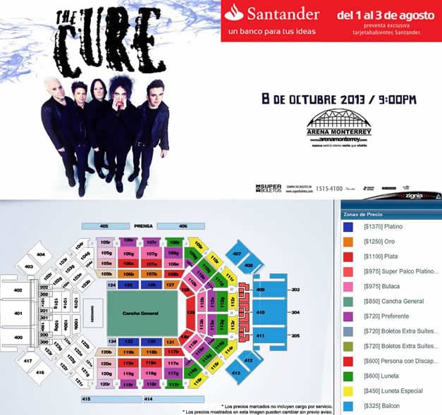 Ya están los precios de los boletos para The Cure en la Arena Monterrey este 8 de octubre. Aquí van. La preventa será del 1 al 3 de agosto. Zona: Platino $1370 Oro $1250 Plata $1100 Súper Palco Platino $975 Butaca $975…