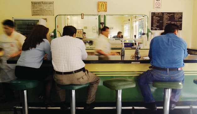 El ambiente es de colores pastelosos, siilas y bancos con orillas cromadas, servicio eficiente. Con la primera cucharada el afortunado visitante se aísla y traslada al pasado,a tiempos mejores, más tranquilos y amables, en los que había momentos para…