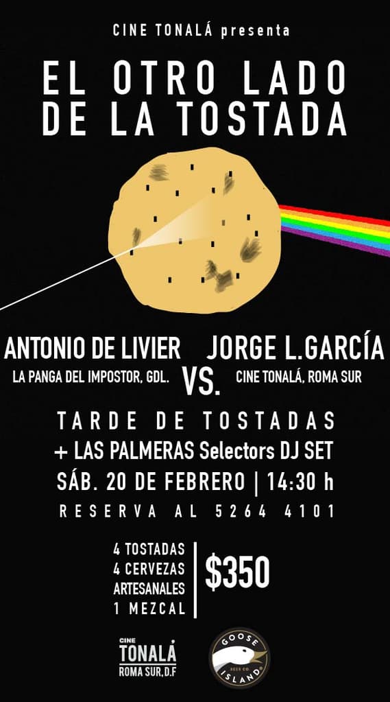 Este sábado 20 de febrero, pásate un sábado ‘de la tostada’ en el Cine Tonalá. Habrá un duelo entre el chef del cine, Jorge L. García, y Antonio de Livier, de La Panga del Impostor en Guadalajara. Ambos presentarán…