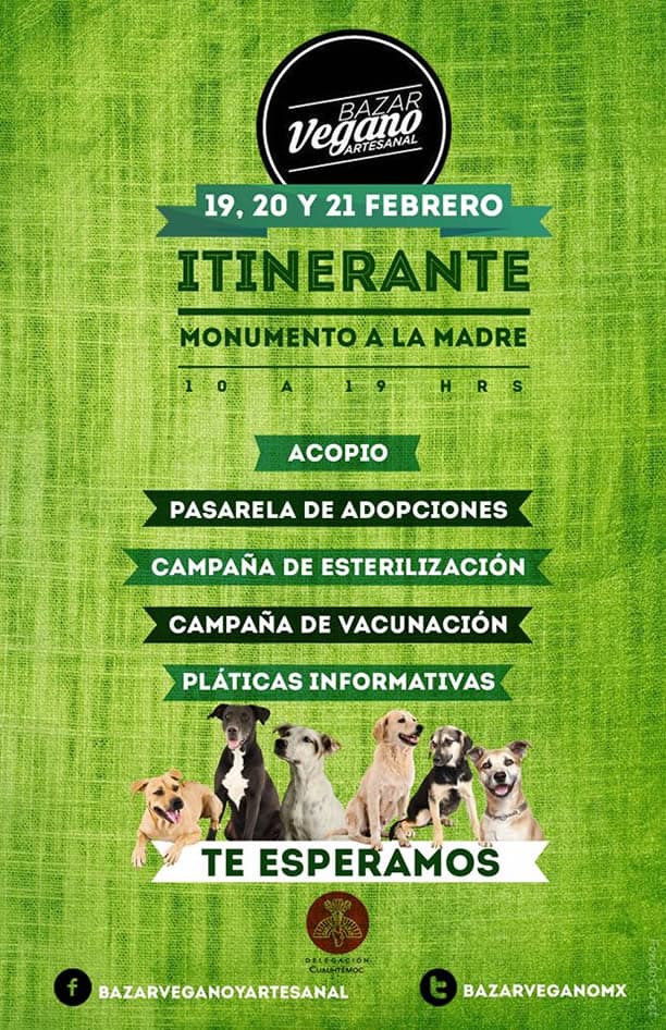 Este 19, 20 y 21 se llevara a cabo el Bazar Vegano Itinerante Animalero en el que el público podrá pasar un día en compañía de sus mascotas y donde encontrarán más de 50 expositores de productos artesanales, veganos,…